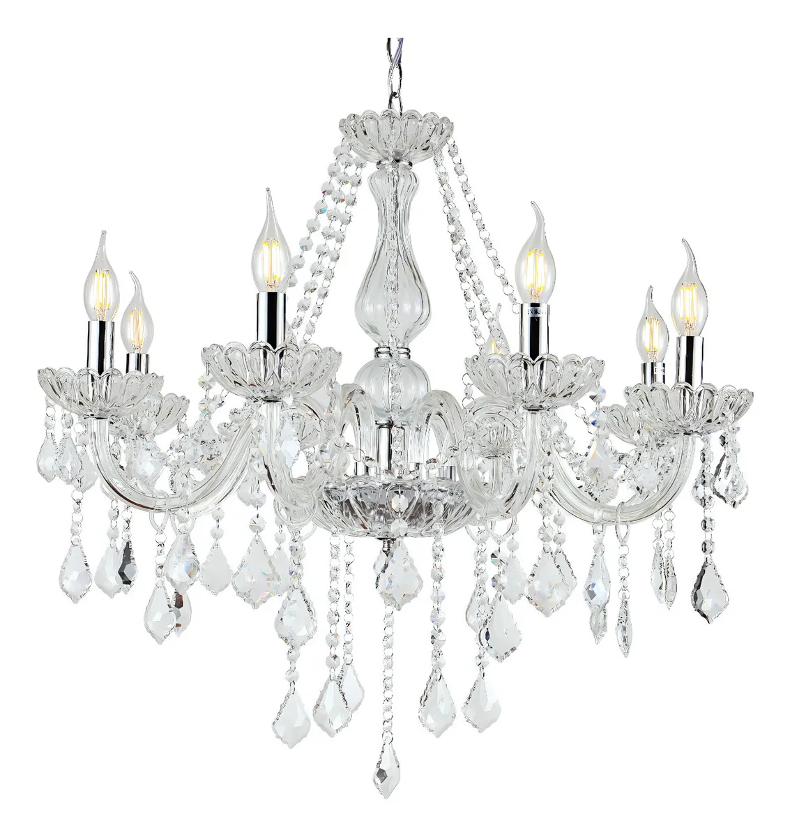 Apresentamos o Lustre Candelabro de Cristal Legítimo com 8 Braços da Inovartte, uma joia de iluminação que personifica nobreza e delicadeza, perfeita para infundir elegância atemporal em seus espaços. Este clássico perene, com pingentes em cristais K9 autênticos, reflete a luz de maneira hipnotizante, criando um ambiente de suspiros e admiração, ideal para quem valoriza decorações que transcendem tendências passageiras.